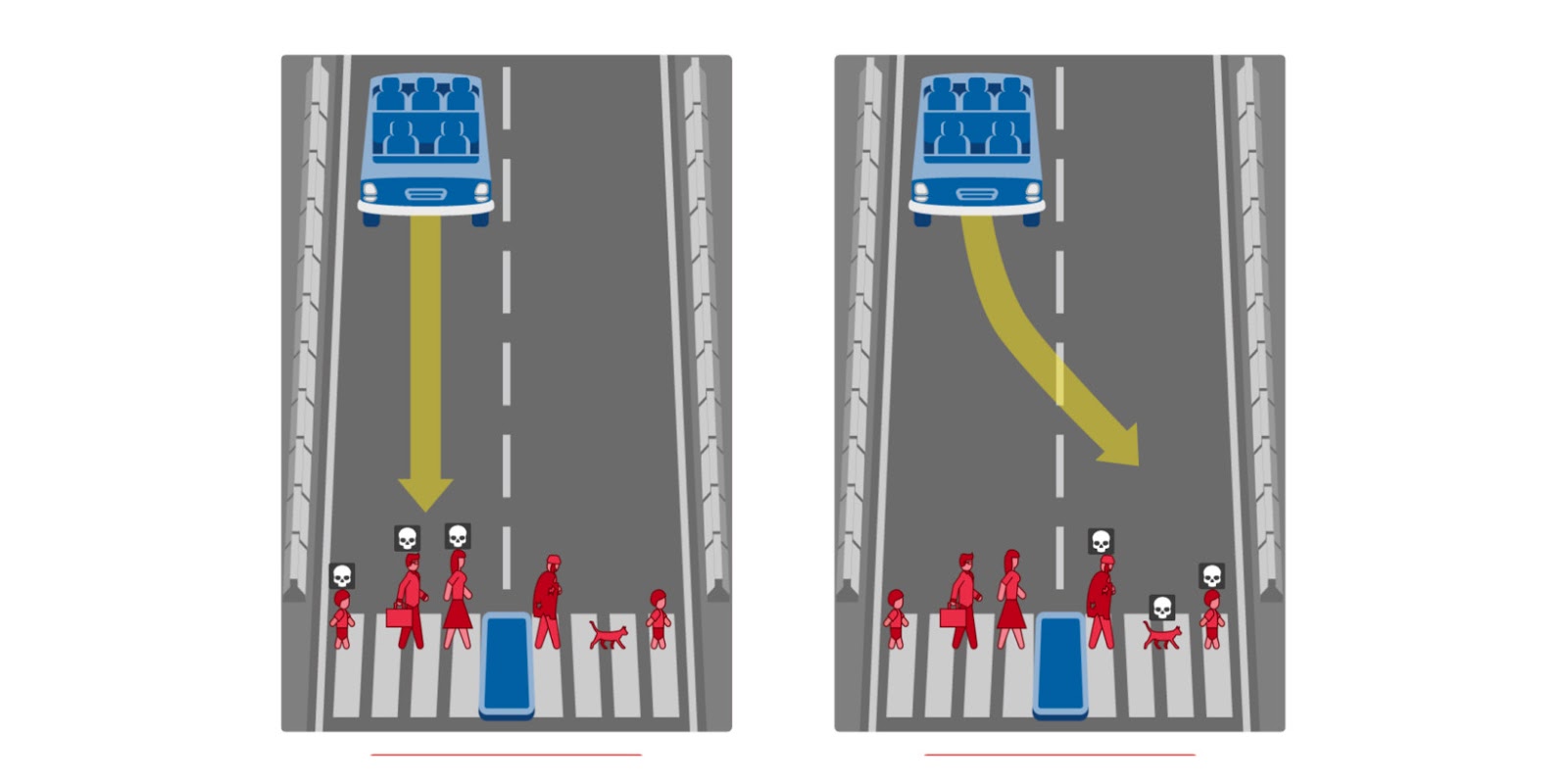 Moral Machine es un proyecto de investigación del MIT que intenta acercar la sensibilidad de la especie humana a la Inteligencia Artificial (IA). El proyecto se basa en ponderar diferentes escenarios, a cual peor, mutuamente excluyentes, a los que se enfrenta un coche de conducción robótica. Por ejemplo: ¿escogerías que el coche atropellara causando la muerte a 4 mujeres de mediana edad, o preferirías que el coche atropellara a 2 hombre, una mujer, un anciano y 3 perros?