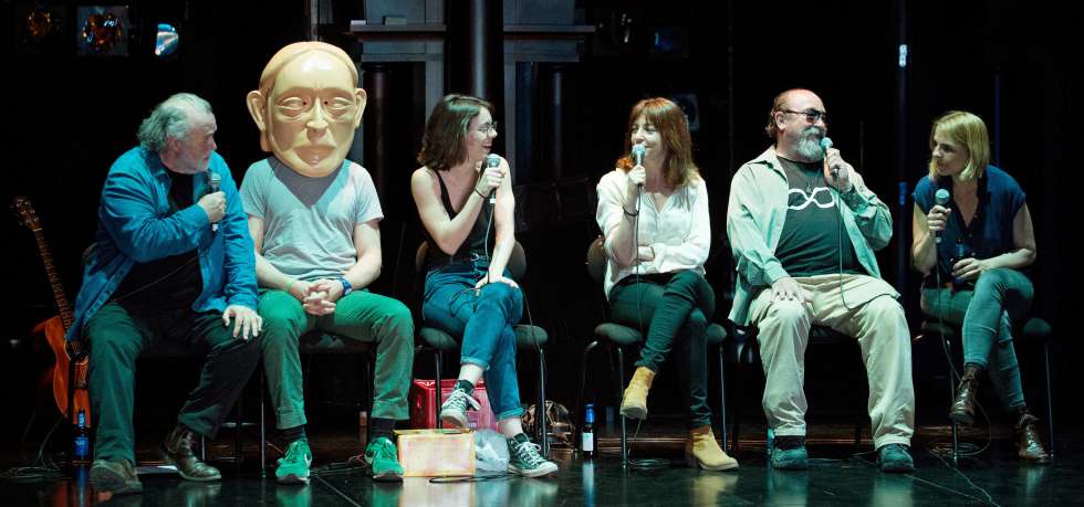 Dramaturgo Ferran Dordal / espacio escénico max glaenzel / diseño de personaje y máscara silvia delagneau / iluminación carlos marquerie / composición musical y espacio sonoro nao albet / sonido igor pinto ayudante de dirección alba pujol / ayudante de escenografía josé iglesias / ayudante de vestuario laura garcia / preparación en técnica viewpoints carlota subirós. Producción teatro libre. En este espectáculo, los actores visten su ropa personal.