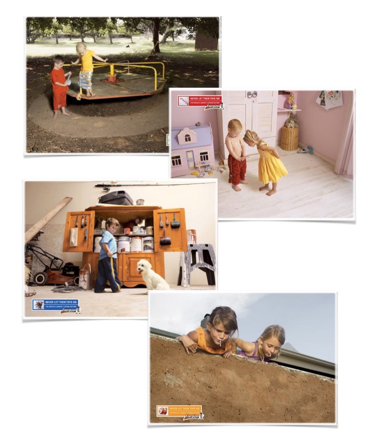 Mi lectura del anuncio es algo distinta aunque no distante. La imagen llama la atención del adulto y pretende asustarle de las consecuencias que tiene dejar a los niños a su libre albedrio. “Si no puedes tenerles vigilados”, parece que nos diga, “al menos dales juguetes que ordenen sus espacios de ocio”. Si son juguetes con pilas van a ser juguetes mecánicos, un tipo de juguete que convierte al niño en espectador. En todo caso un tipo de juguete que no estimula la creatividad…. Que quieren que les diga, quizás eso me da mas miedo que las diabluras que puedan hacer, o el descubrimiento precoz de su sexualidad… Al final no se si el anuncio puede lograr lo que pretende, que yo compre pilas duraderas para mis hijos, o mas bien si el anuncio me habrá hecho sonreír y remotamente me habrá predispuesto en contra de los juguetes mecánicos. Para saberlo habría que hacer un estudio de campo, pero me temo lo peor para el anunciante…
