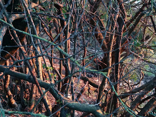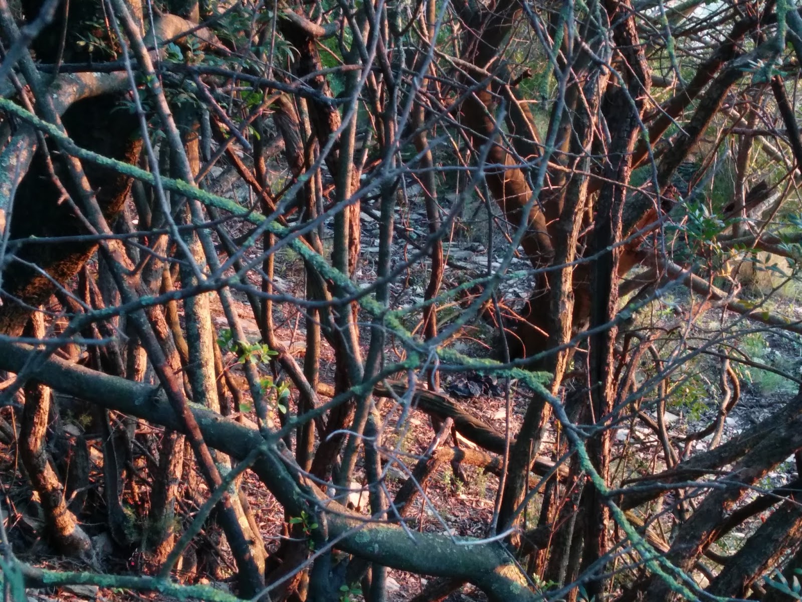 Pero cuidado, no toda señal es signo. Un libro se ha escrito para ser leído, (aunque no sepamos hoy por hoy interpretar algunas escrituras antiguas). Estaríamos en la modalidad Alfa. Pero observe ahora la figura 2…. Esta fotografía es un detalle de un bosque que en ningún modo quería “per se” trasmitirnos un mensaje. Sin embargo su autor titula la foto “urdimbre”…. ¡Ah!, entonces es que nos presenta la imagen como símbolo de algo… estamos pasando de una modalidad Beta a una modalidad Alfa sencillamente porque alguien (el autor) se ha tomado la molestia de fotografiar algo y denominarlo de una manera concreta…. Establece una semblanza que puede ser hasta cierto punto icónica con una urdimbre, pero es una semejanza que no aceptaríamos mas que como símbolo (es decir, acuerdo entre hablantes), por lo mucho que separa unas ramas de una verdadera urdimbre. Muchas obras de arte contemporáneas nos invitan a repensar la naturaleza mediante el uso de iconos elevados a símbolos….